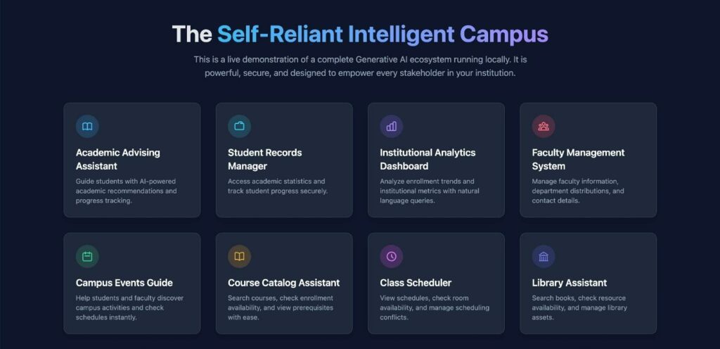 This blueprint enables a powerful vision: a complete generative AI ecosystem that is hosted locally, operates entirely offline, and places control firmly in the hands of the institution.