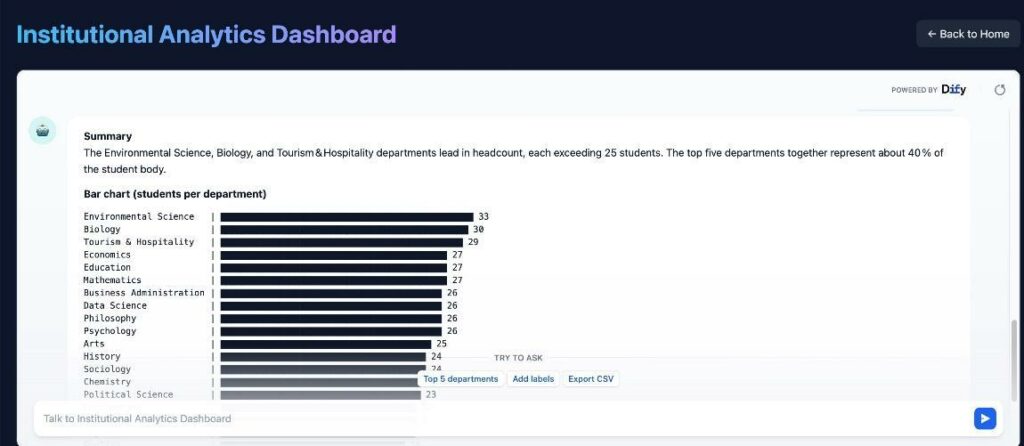 For Leadership: An institutional analytics dashboard provides immediate insights into strategic questions about enrollment trends and student success, enabling proactive, data-informed governance.